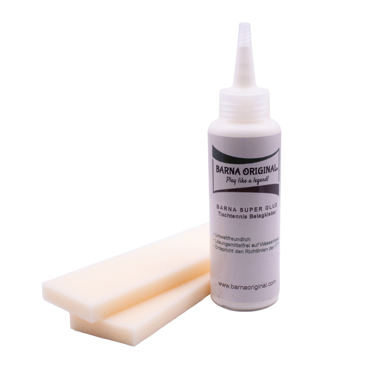 BARNA ORIGINAL SUPER GLUE ist ein lösungsmittelfreier Kleber (VOC-Free) auf Silikon- und Wasserbasis zur Montage von Tischtennisbelägen