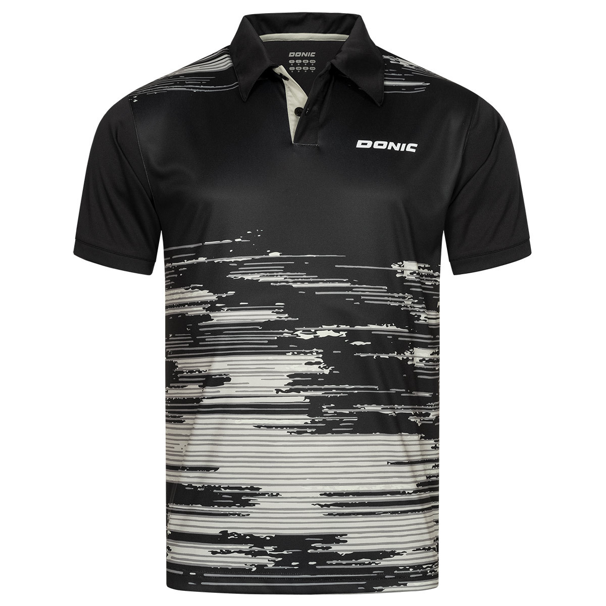 Poloshirt in der Grundfarbe schwarz mit grauem Graphikprint auf der Vorderseite. Brustbereich und unifarbene Rückseite mit Freiraum für Bedruckungen. Die atmungsaktive Drylite-Funktionstechnologie leitet Schweiß ab und hält die Haut angenehm trocken.