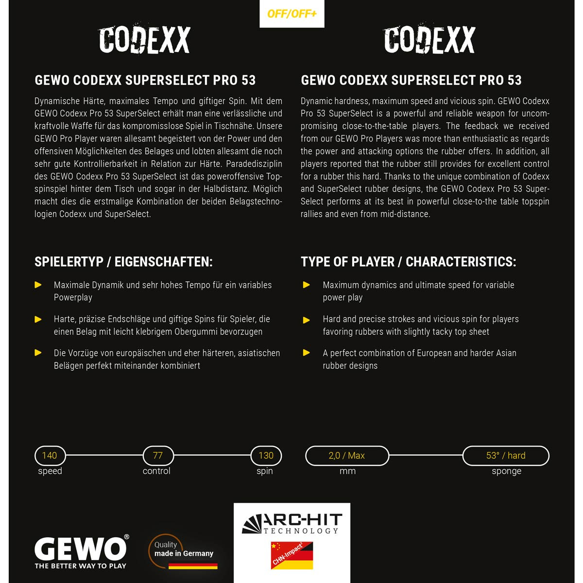 GEWO Belag Codexx Pro 53 SuperSelect - Für kompromissloses Powerplay