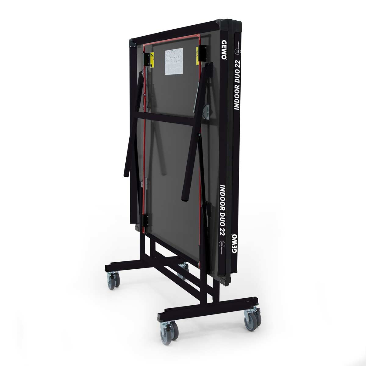 Die 22 mm Spezial-Spieloberfläche (3tecWOOD premium) ermöglicht einen schnellen und gleichmäßigen Ballabsprung. Der GEWO Tisch Indoor Duo 22 benötigt nur einen minimalen Stauraum von ca. 20 cm Tiefe. Das Untergestell ist aus hochwertigem Metall gefertigt und absolut standsicher. Sicherungen an jeder Tischhälfte sorgen für die erforderliche Sicherheit beim Auf- und Abbau. Unebenheiten und unterschiedlichen Standhöhen bis 30 mm können durch den Höhenversteller an den hinteren Standbeinen ausgeglichen werden.