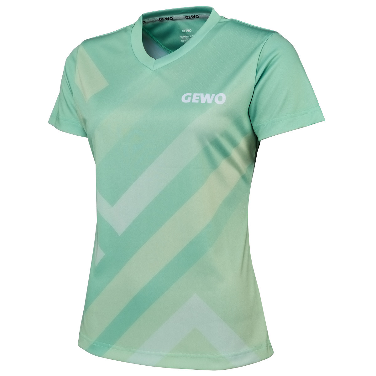 Die Rückseite ist bewusst einfarbig und ruhig gehalten, wodurch das Design auf der Front gezielt in Szene gesetzt wird. Das GEWO Logo auf der Brust fügt sich harmonisch ein und unterstreicht den sportlichen Charakter dieses Tischtennis Shirts.