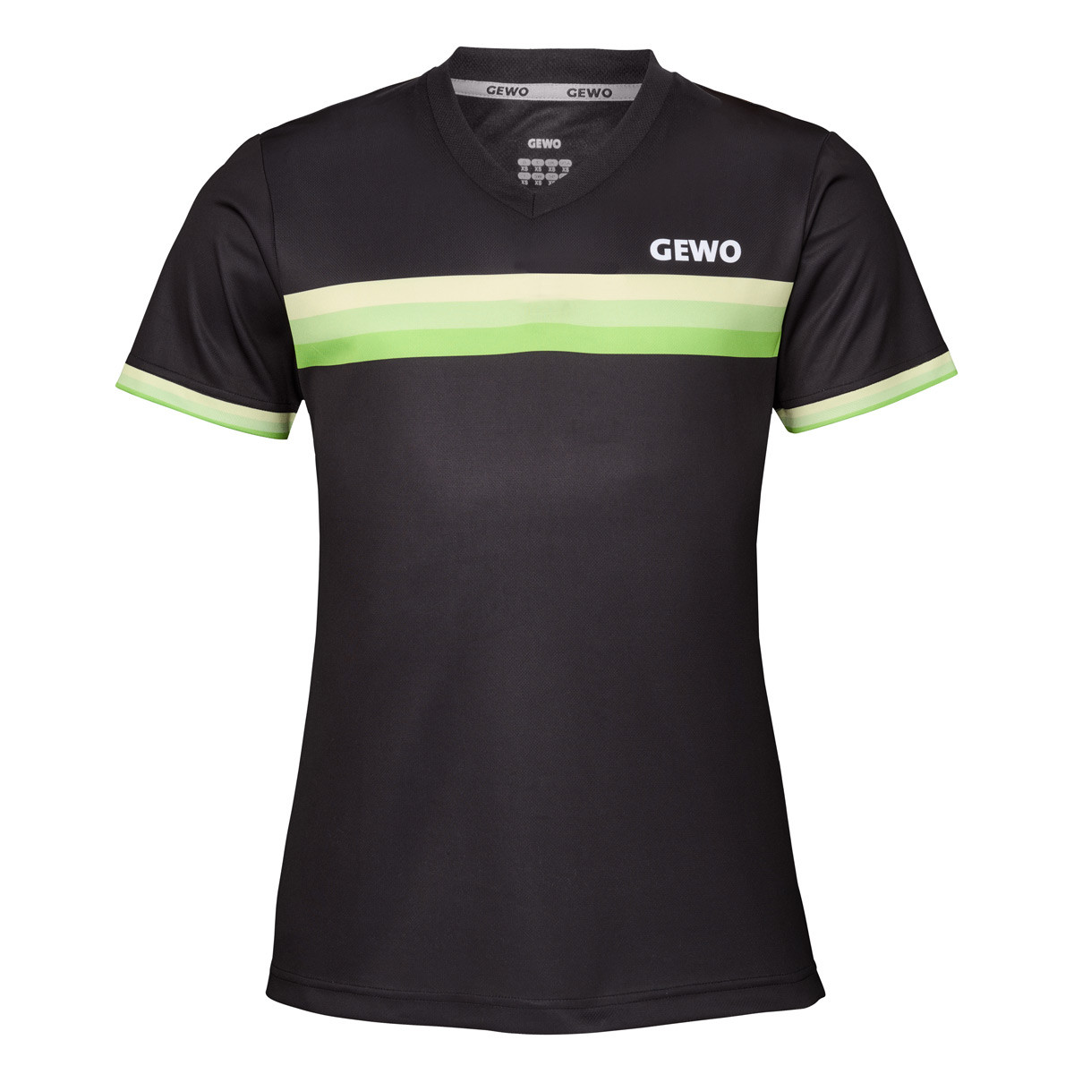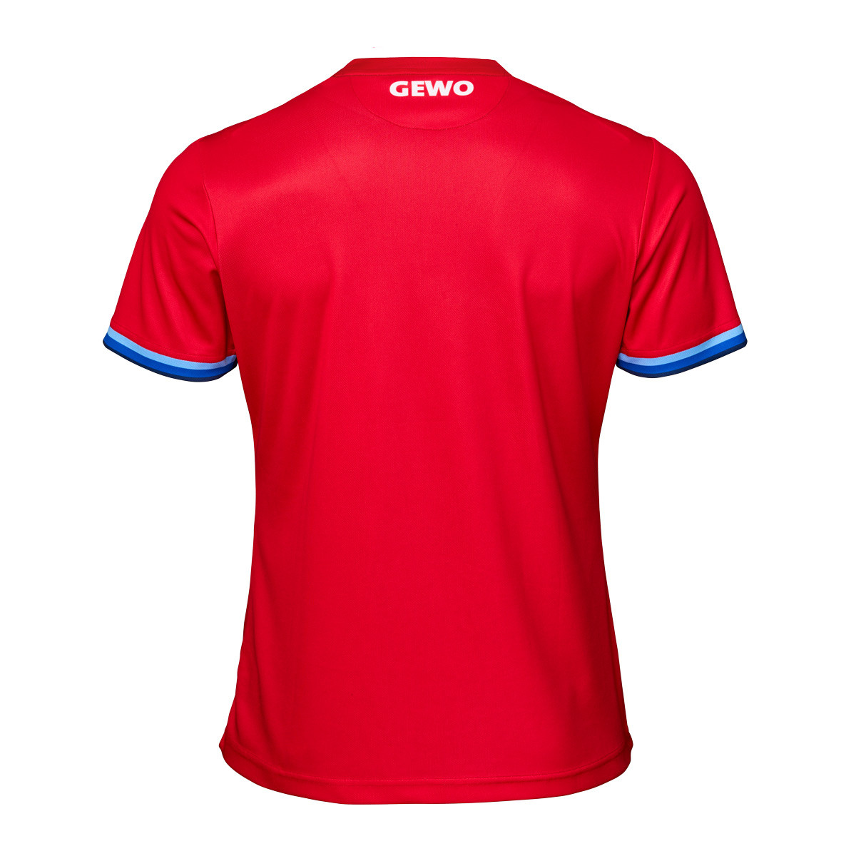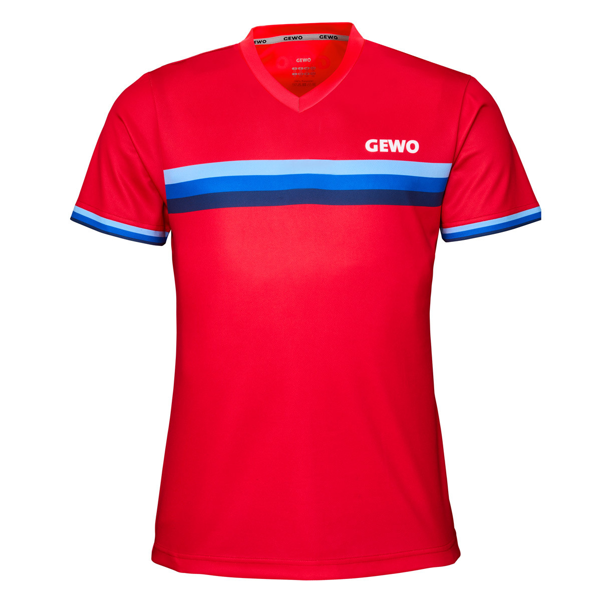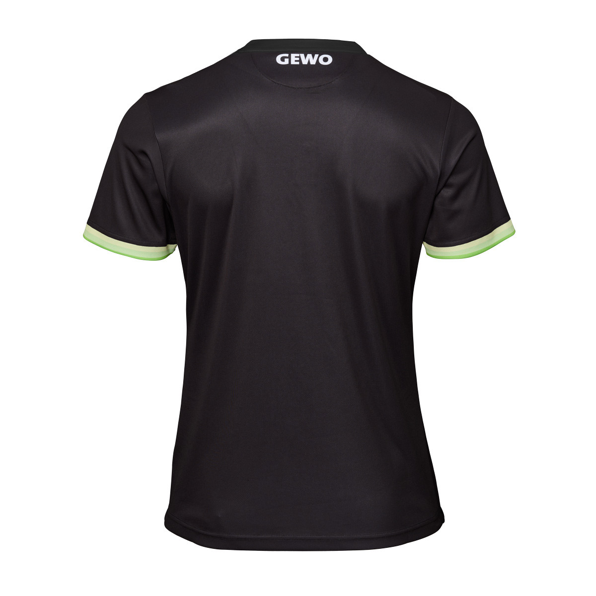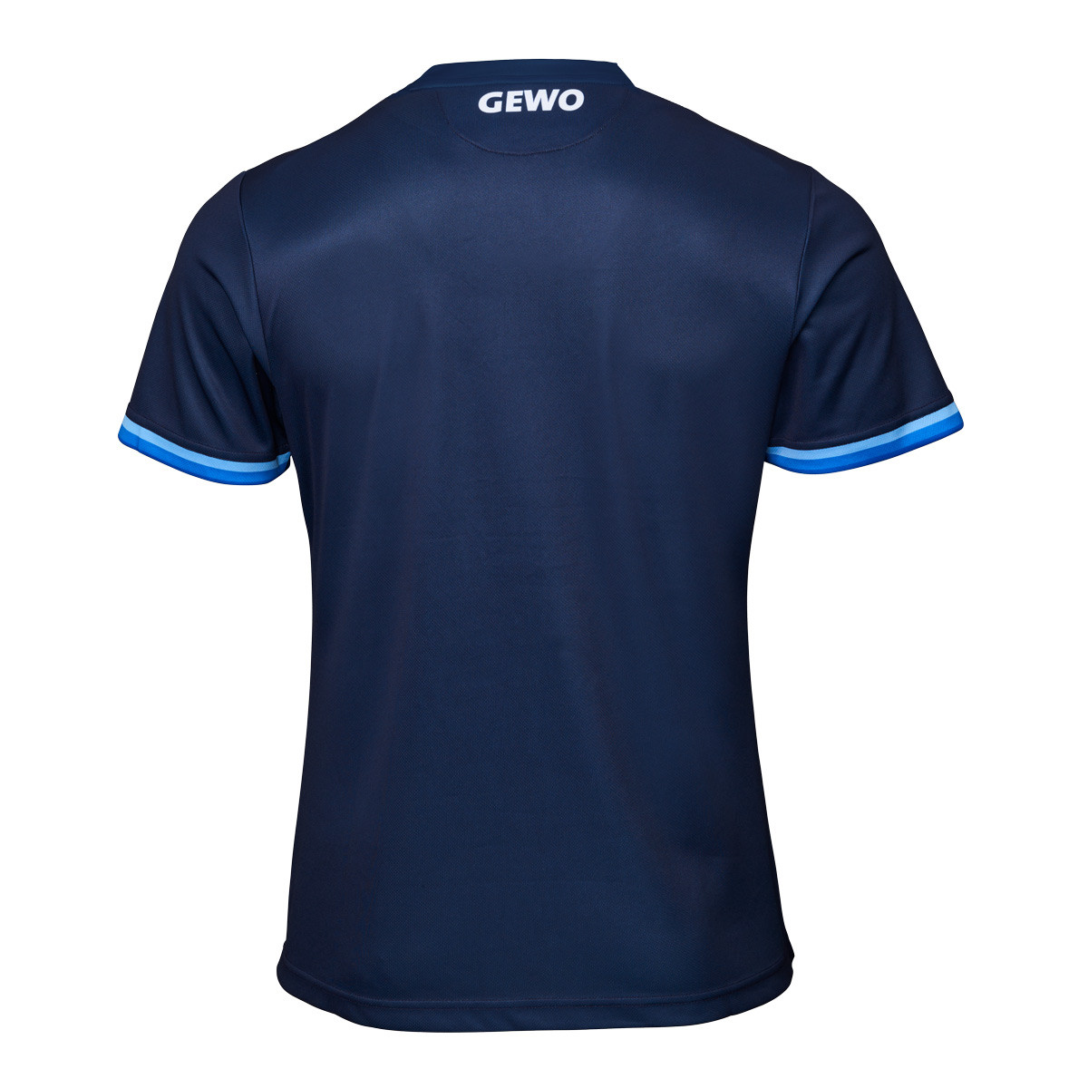 Der V-Ausschnitt sorgt für eine sportliche, offene Optik und hohen Tragekomfort. Die Ärmel werden durch einen sauberen Abschluss mit streifenbetontem Band ergänzt, das die Linienführung aufnimmt. Das GEWO-Logo vorne rechts und im Nackenbereich ist dezent per Sublimation integriert und fügt sich harmonisch in das Gesamtbild ein.