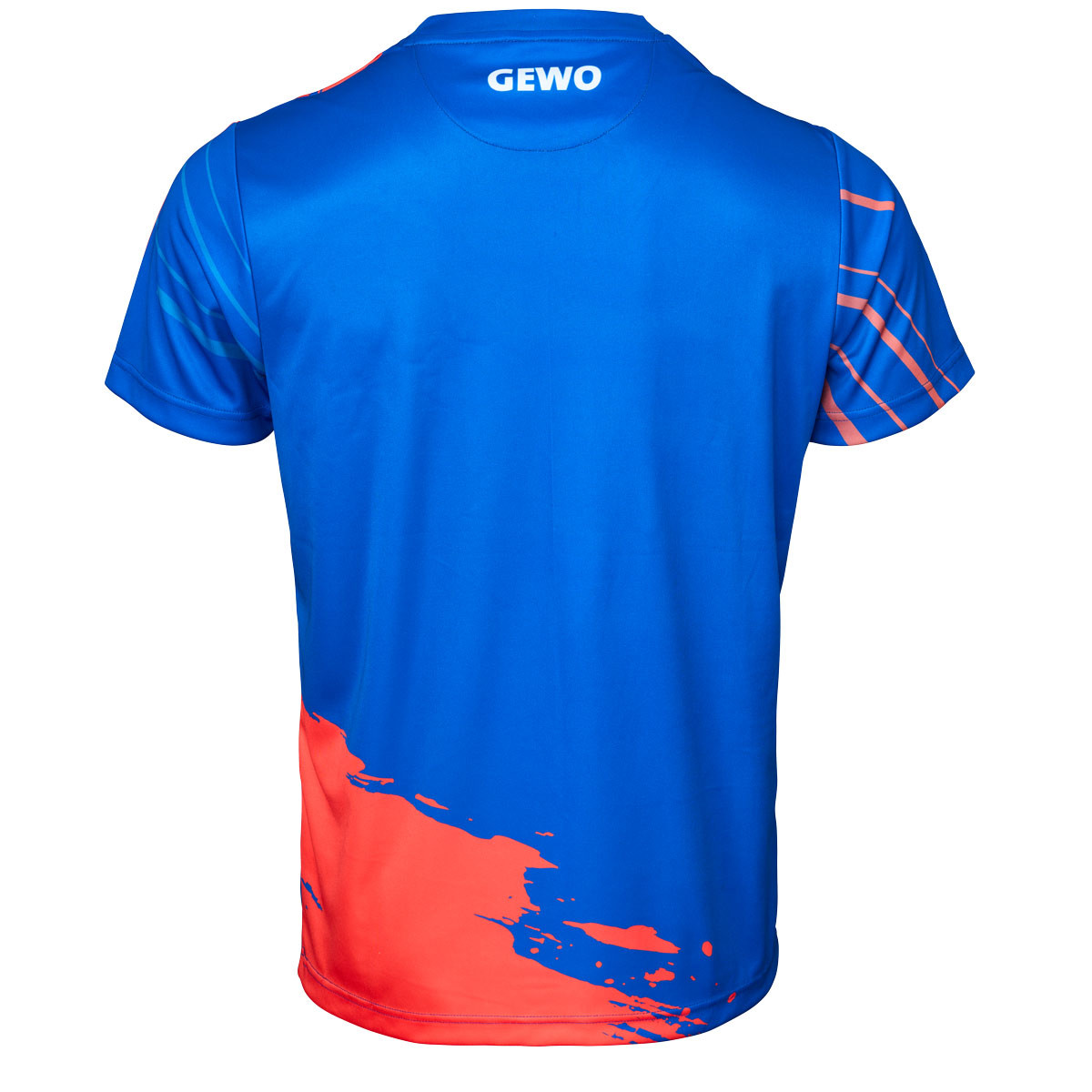 Die Rückseite bleibt überwiegend ruhig und wird durch einen gezielten Farbakzent im unteren Bereich ergänzt für ein ausgewogenes Gesamtbild mit Wiedererkennungswert. Das GEWO Logo auf der Brust setzt einen klaren sportlichen Abschluss.