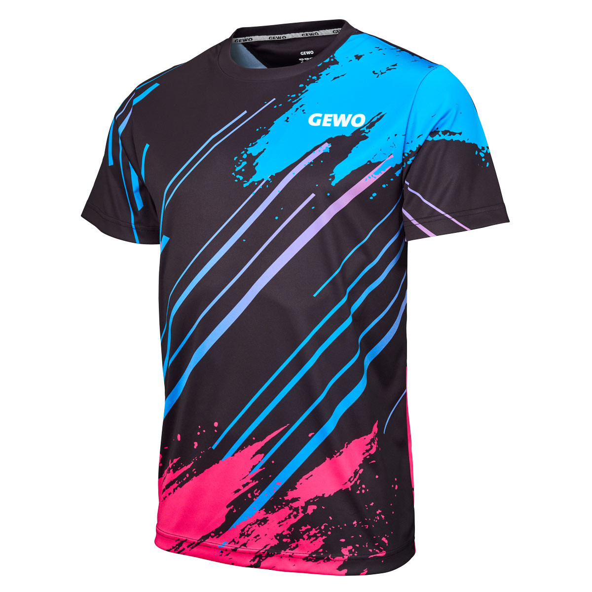 Das GEWO Shirt Santo eignet sich ideal als Tischtennis Shirt für Training, Wettkampf und Vereinsauftritte. Die klar strukturierten Flächen ermöglichen eine saubere Ergänzung durch Teamlogos oder Sponsoren und sorgen für einen professionellen Gesamteindruck.