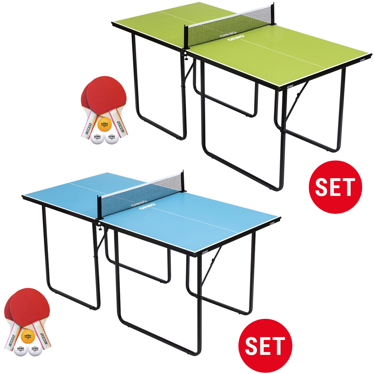 GEWO Set 1x Midi Tisch + 1x Midi Schlägerset Tischtennis-Feeling auf kleiner Fläche