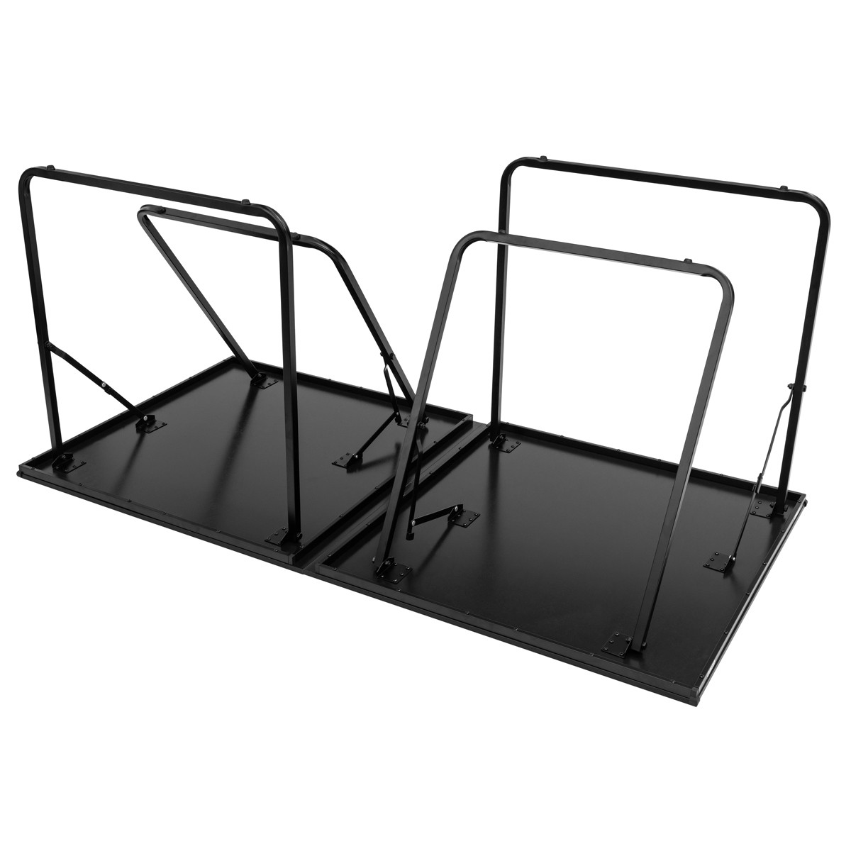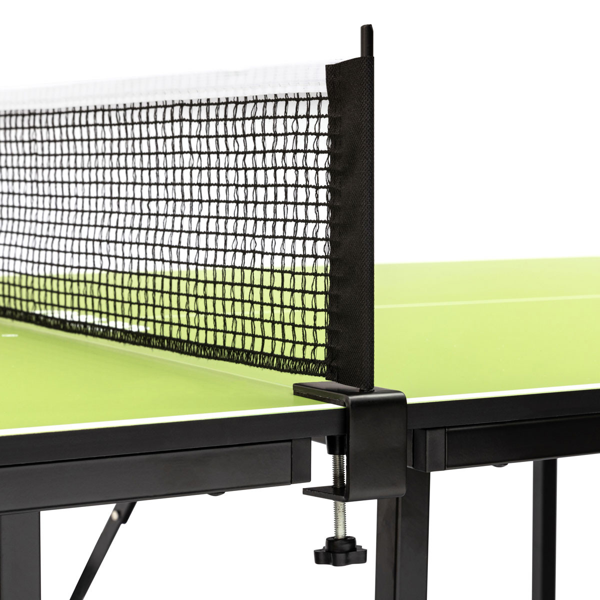 Die 12?mm starke MDF-Platte mit weißer Spielfeldmarkierung sorgt für gutes Ballabsprungverhalten. Dank des stabilen Metallgestells mit pulverbeschichteten Beinen steht der Tisch sicher und ist sofort einsatzbereit einfach auspacken, Netz montieren und losspielen!