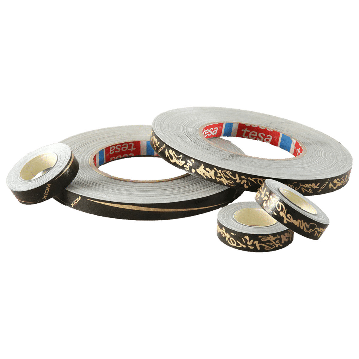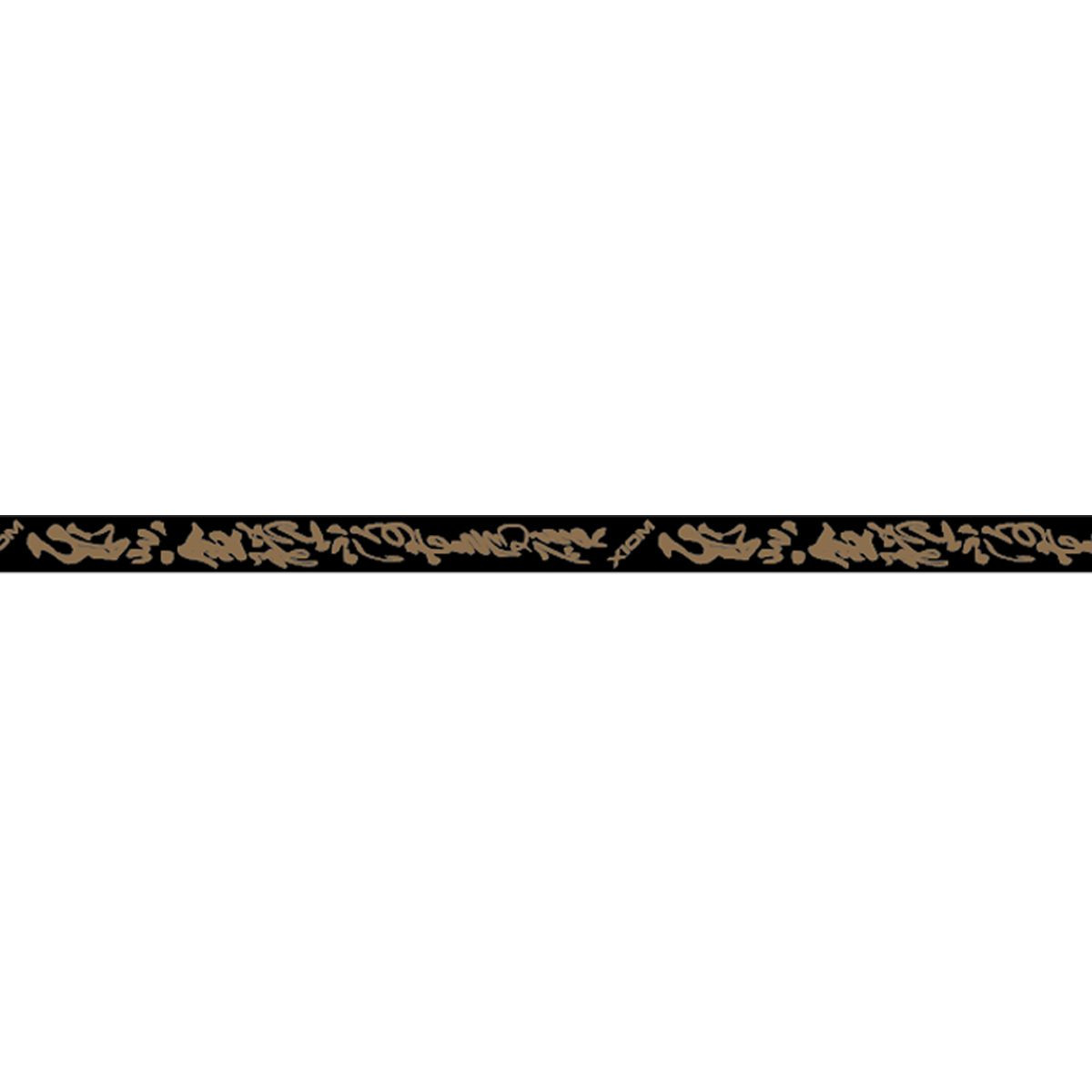 Kantenband in schwarz mit goldener Aufschrift.