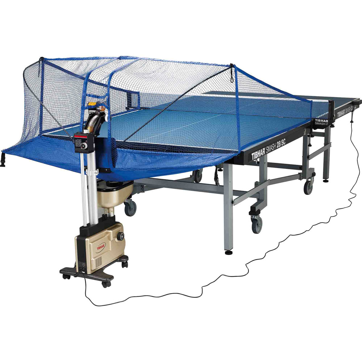Qualitativ hochwertige und robuste Ballmaschine mit leicht anzubringendem Ballfangnetz. Die einfache Bedienung und die fahrbare Konstruktion ermöglichen ein bequemes Handling. Eine Fernbedienung für Geschwindigkeit und Frequenz des Ballauswurfs kann auf der Spielerseite angebracht werden. Die Einstellung von Unterschnitt und Topspin, sowie langen und kurzen Bällen und der Oszillator für wechselnde Richtungen ermöglichen die höchste variable Trainingsgestaltung.