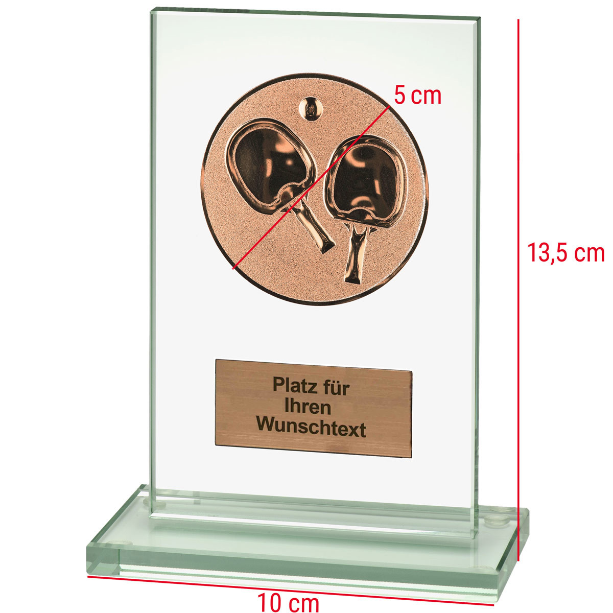 Diese Glas-Trophäe ist eine ausgezeichnete Wahl, wenn Du etwas Besonderes suchst. Du kannst den Pokal nach Deinen Wünschen mit dem beigefügten Tischtennis-Emblem versehen.